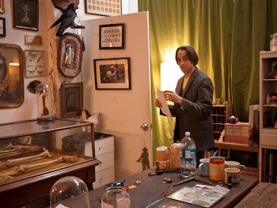 This spring the Morbid Anatomy Museum welcomed a fantastic new addition to its collection of unusually beautiful things: a plaster bust created for the study of phrenology. The bust portrays a man whose age lies somewhere between young and ageless. The white of the plaster has tarnished over the years, yet a faint phrenological map is still visible, sketched across his crown and eyes. At the base of the bust, where a label identifying to whom he belonged or in which museum he was housed, only a single word remains immediately visible: tragique.
