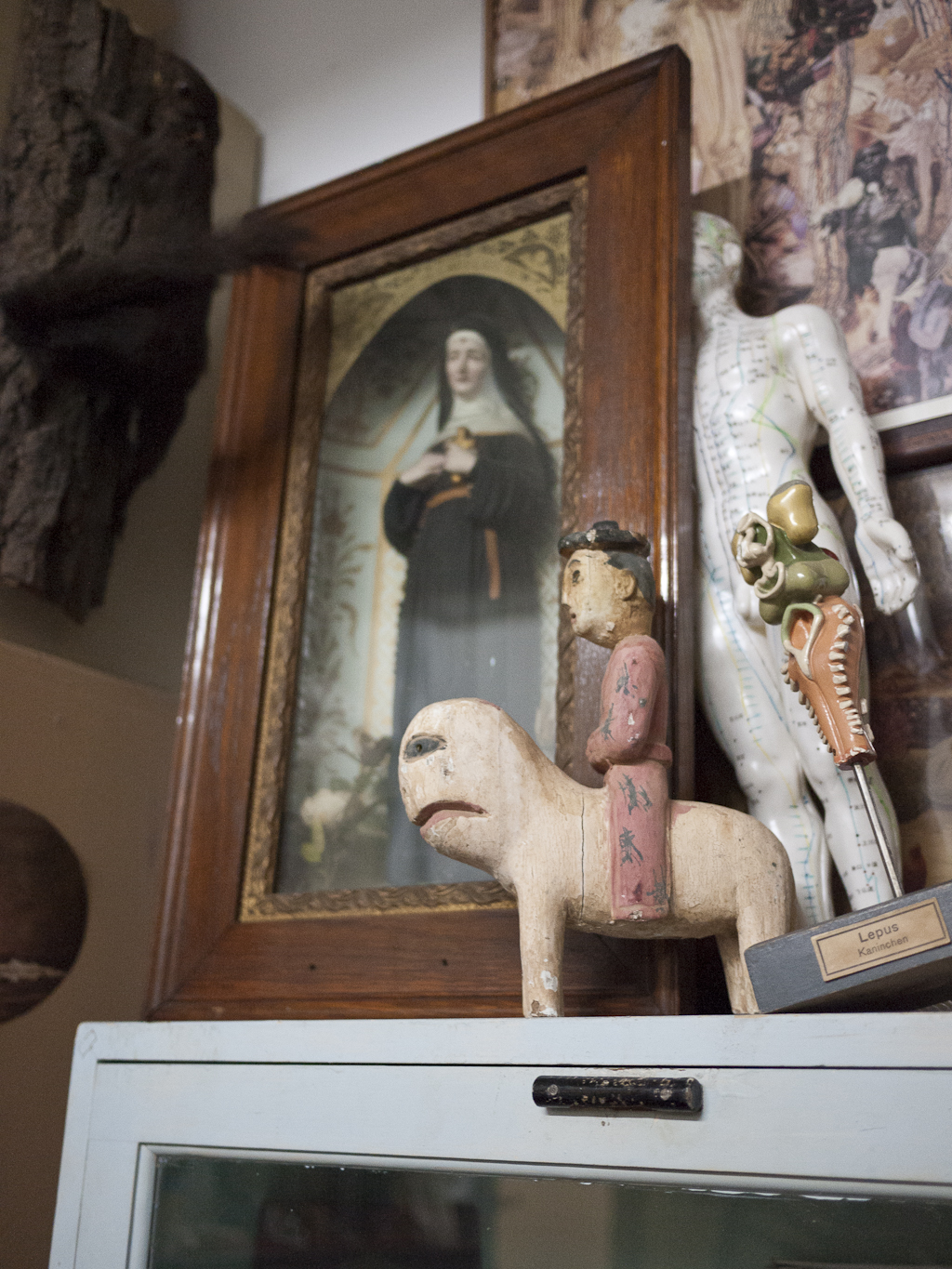 Louis Thomas Jerôme Auzoux (1797-1880) was a French physician frustrated by the body’s inability to be preserved long enough for thorough anatomical study. Cadavers decomposed too rapidly. Anatomical drawings and texts proved too dry. Wax models melted under prolonged touch. In response to these issues, Auzoux turned to the popular art of papier-mâché, typically used to created dolls for children, and built life-size anatomical models of the human body. The organs of these faux cadavers could be removed and handled, mimicking the process of dissection. However, while Auzoux was certainly interested in the functions and design of the cranium, he was devoted to the science of anatomy, not phrenology. He, as far my research can tell, never created casts like the one in question. What, then, was the bust doing at Auzoux’s workshop? After a brief interview with the gentleman who sold the bust to Joanna, I learned that the piece was likely not manufactured by Auzoux, but possibly used as a reference piece in the factory’s collection. Perhaps it was sold during a weeding of their collection.